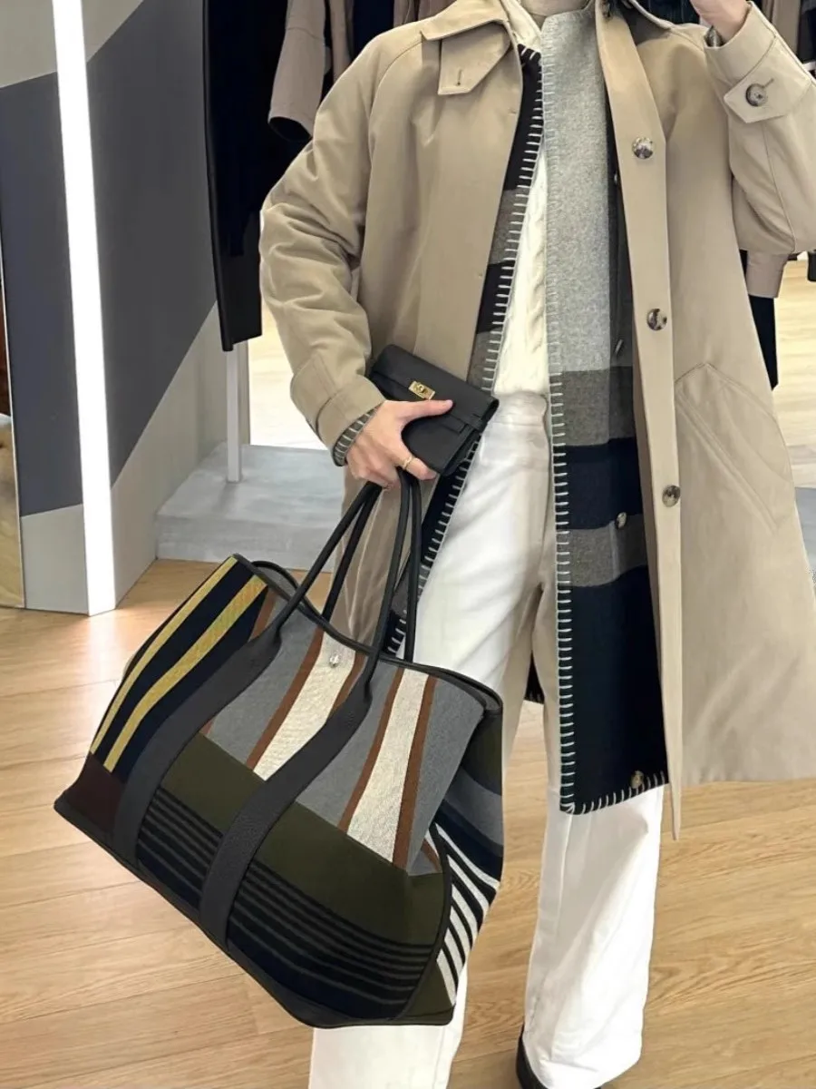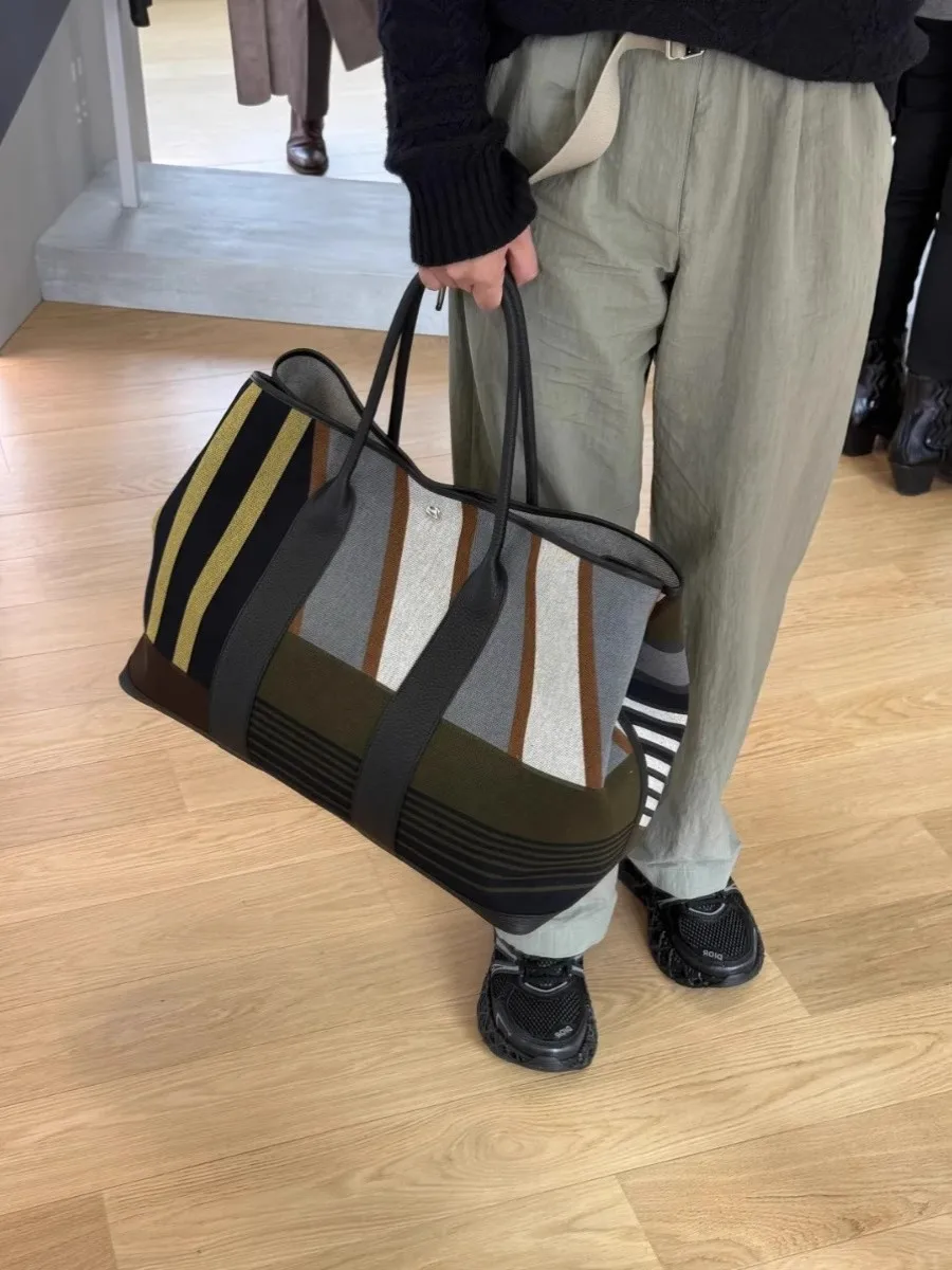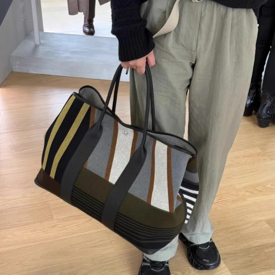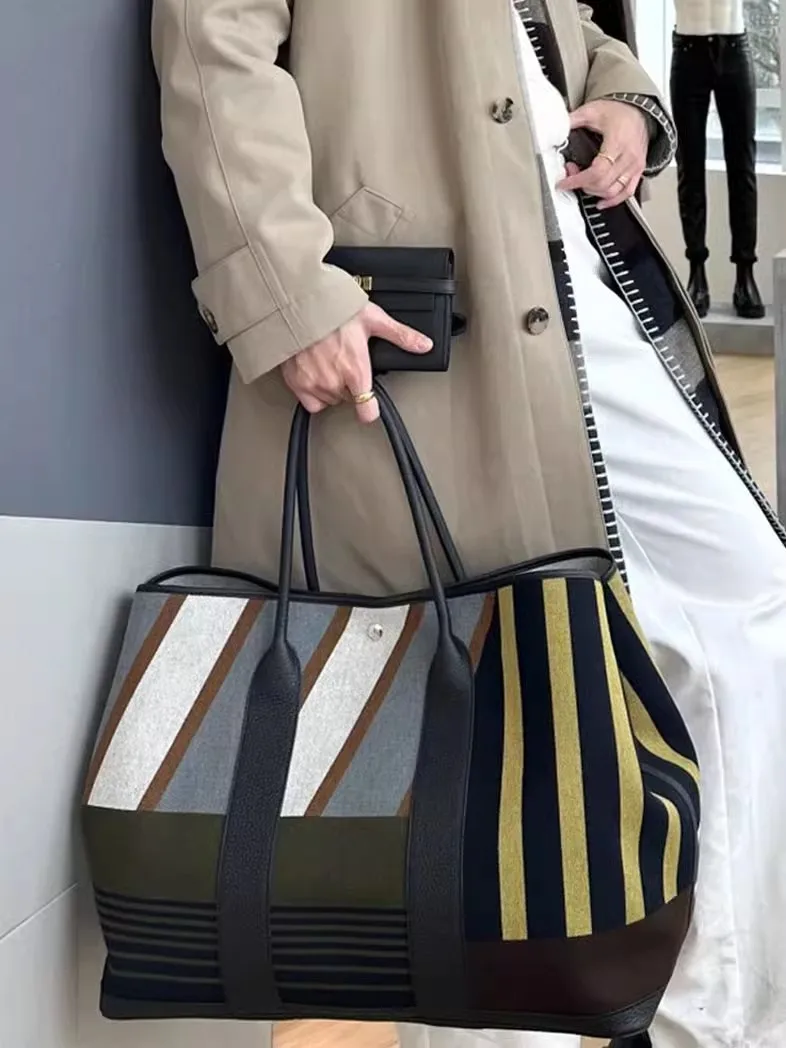 Striped contrasting large tote
